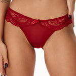 Een perfecte combinatie van verfijnde kant en doorzichtig tule. De kleine satijnen strik en flatterende bikinitop benadrukken elegant je silhouet. Verkrijgbaar in mysterieus zwart, puur wit of passievol rood. Eenvoudig, sensueel, onweerstaanbaar.