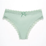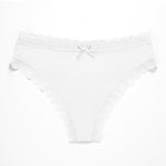 Een zachte en vrouwelijke slip die comfort en elegantie combineert. De mid-rise snit flatteert de silhouet, terwijl de kanten randen en het kleine strikje bij de taille een verfijnde touch toevoegen. De zachte en rekbare stof zorgt voor een aangename pasvorm voor dagelijks gebruik, zonder in te boeten op stijl.
