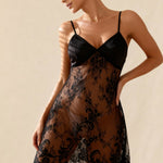 De Marbella nachtjurk combineert de zachtheid van satijn met de lichtheid van fijne kant.