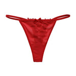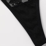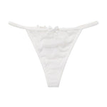 Een sensuele en minimalistische string, ontworpen om te spelen met transparantie. De voorkant is gemaakt van tule, versierd met delicate bloemenkant en een klein satijnen strikje, terwijl de string achterkant de rondingen benadrukt zonder afdrukken onder de kleding achter te laten. Licht, discreet en ultra-sexy.